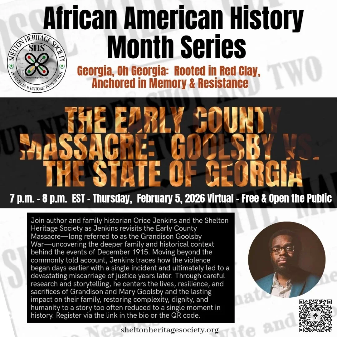 Happy Black History Month! Georgia, Oh Georgia: Rooted in Red Clay, Anchored in Memory & Resistance is an African American History Month Series centering descendant voices, family memory, and historical truth. Through presentations and reflections, the series examines how African American individuals and communities confronted injustice—through moral leadership, self-defense, faith, and collective resolve—and how those acts of resistance continue to shape our understanding of history and responsibility today.
